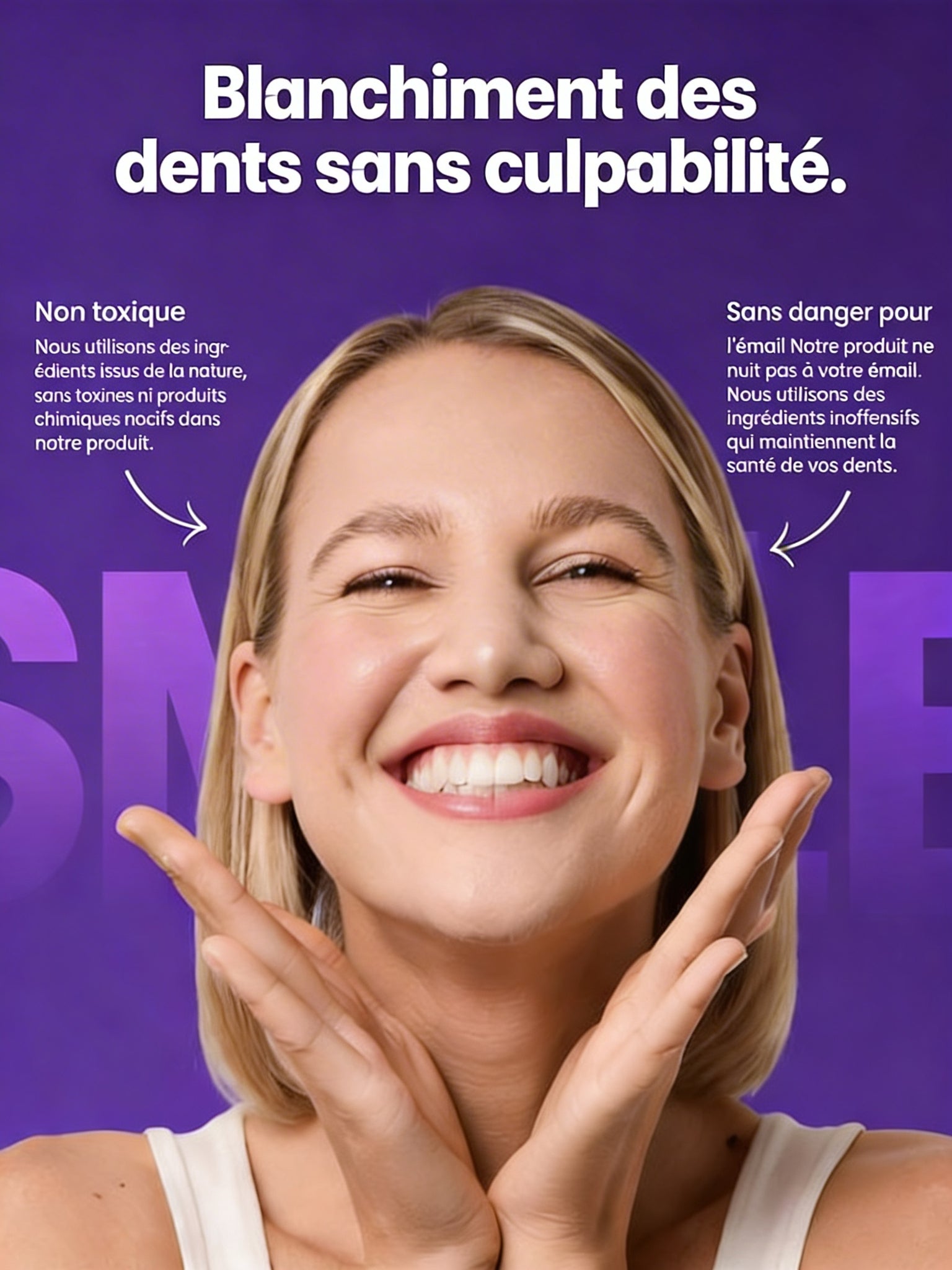 Le violet est la couleur complémentaire du jaune. Il neutralise les taches jaunes sur les dents, rendant instantanément votre sourire plus éclatant.